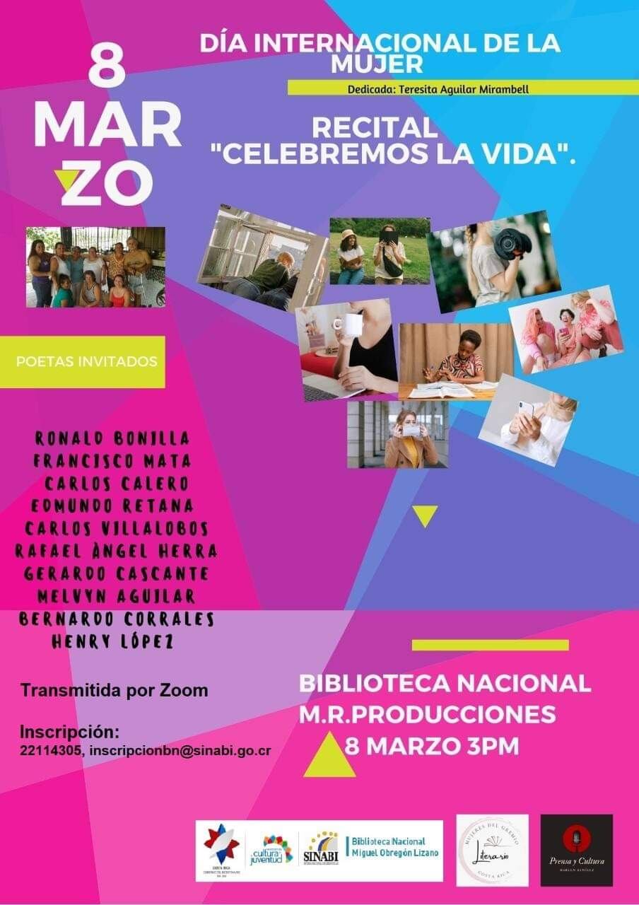 - 6 al 9 de marzo: Escuchemos a nuestras escritoras en la publicación de podcasts de poetas costarricenses en el Facebook Biblioteca Nacional Costa Rica