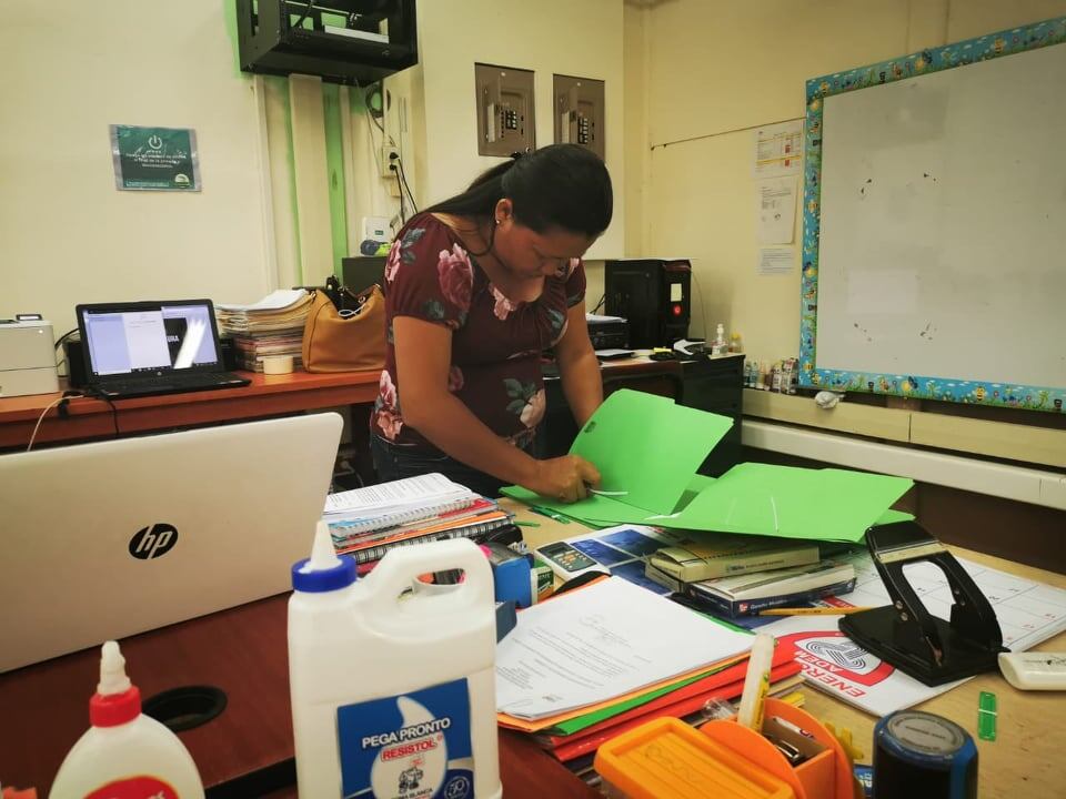 Marcela Arroyo es docente de primer grado en la Escuela de Hatillo 2 y, tras el anuncio de la suspensión de clases hasta el 13 de abril por la pandemia del covid-19, ella corrió para prepararse con un contingente de fotocopias para entregar a sus alumnos y que avanzaran con la materia durante estos días que van a estar en el hogar.