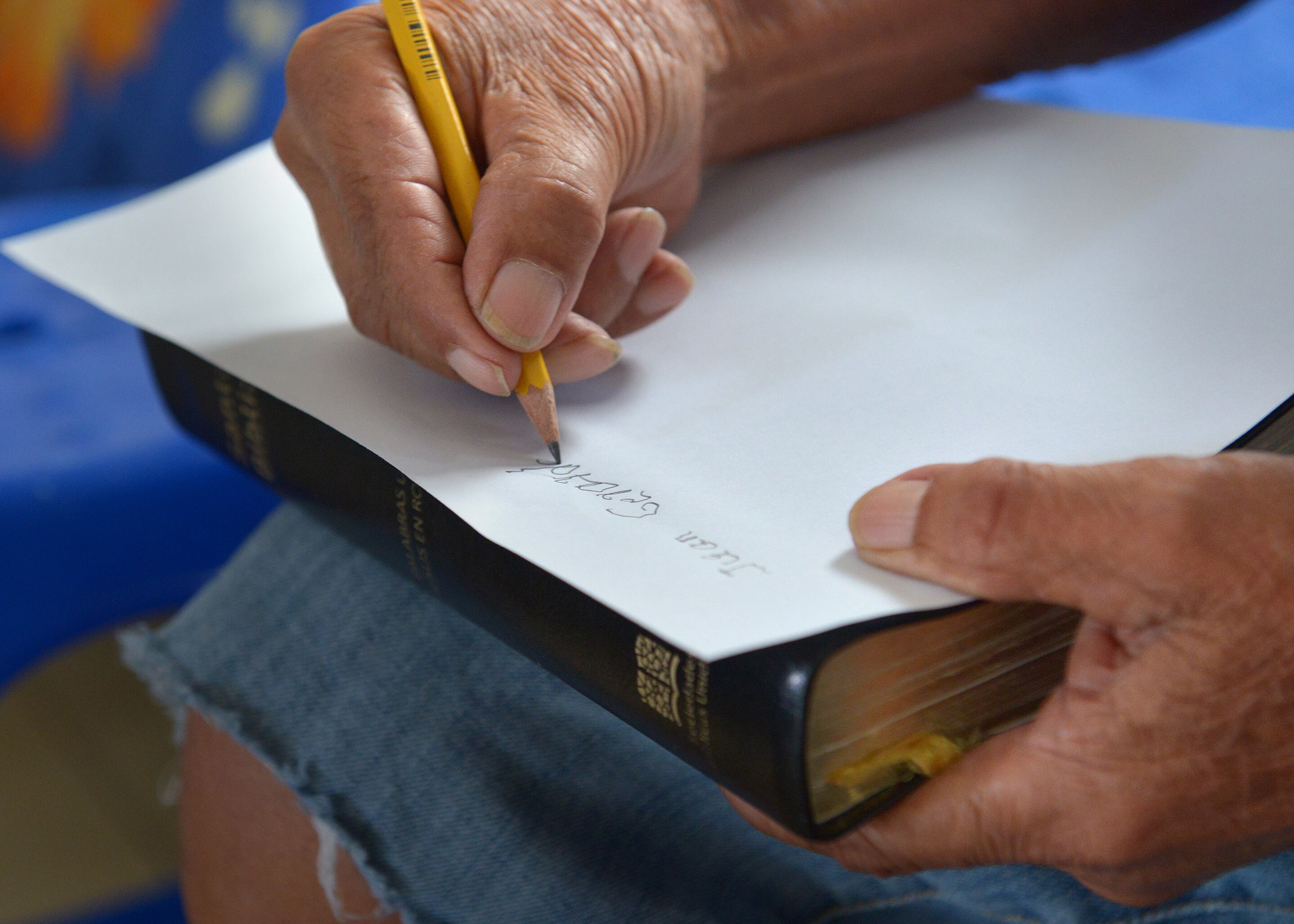 “Con la escritura empecé aprendiendo a escribir mi nombre y la palabra ‘mamá’ y ‘papá’, tengo una letra que da vergüenza. Saber leer y escribir me permite ahora saber si un bus va para Heredia o Pavas porque lo puedo leer. Ahora soy un hombre libre, si uno tiene que ir al banco, ya uno sabe lo que dice ese rótulo, no depende de alguien más; ahora, hasta me siento con capacidad para enseñarle a otra persona y hasta he tenido el atrevimiento de decir que quiero estudiar inglés”, dijo Sánchez riendo..