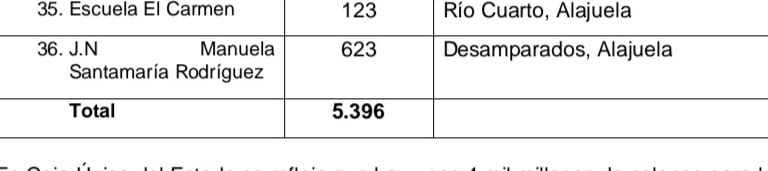 “En coordinación con las direcciones regionales de educación (DRE) y supervisiones de circuito, deberán buscar otras locaciones seguras para el desarrollo de las lecciones presenciales. De no ser así, las comunidades educativas deben acudir a la formación a distancia. En ese sentido, 5.396 (de 1.179.991) estudiantes estarían recibiendo educación a distancia”, indicó el Ministerio de Educación Pública.