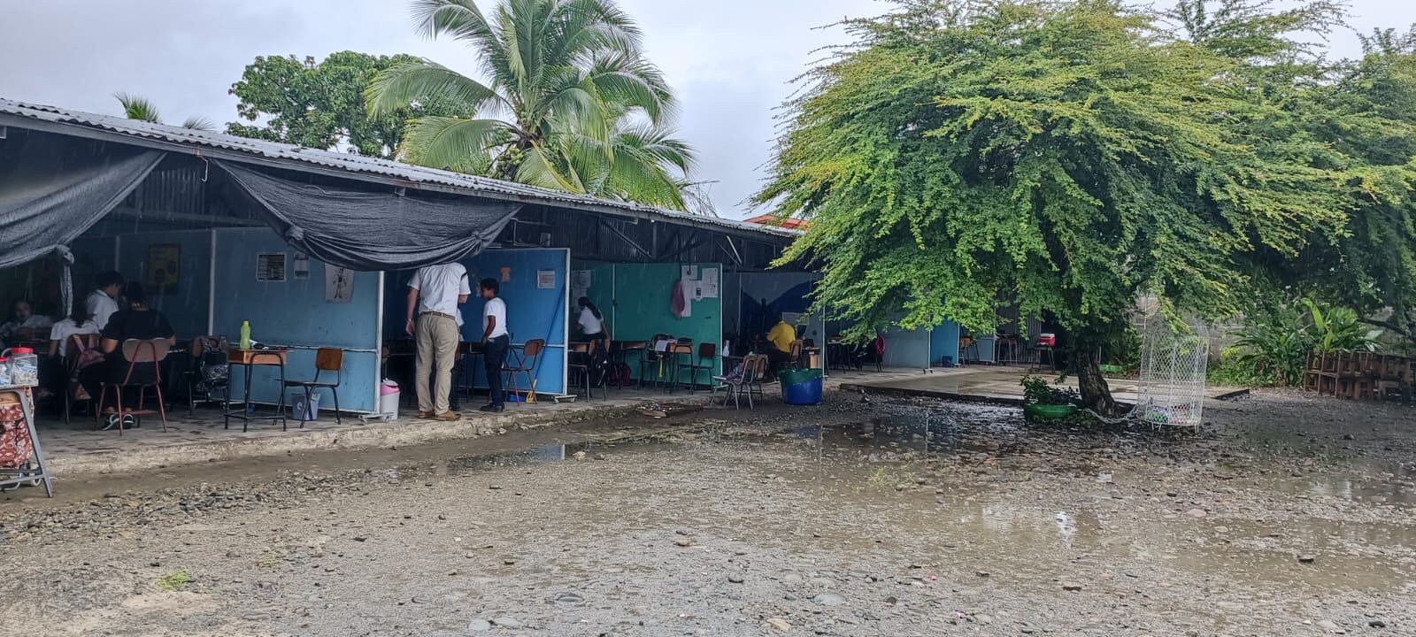 Según la directora, Teresita Cubero, cada vez que llueve fuerte, los padres tienen que ir a recoger a los niños, pues saben que se mojan dentro de la escuela, sea porque esta se inunda o por la gran cantidad de goteras. Ese centro también espera que se cumplan promesas de incluirlos dentro de un plan de atención con un crédito que tramitaría el Gobierno.