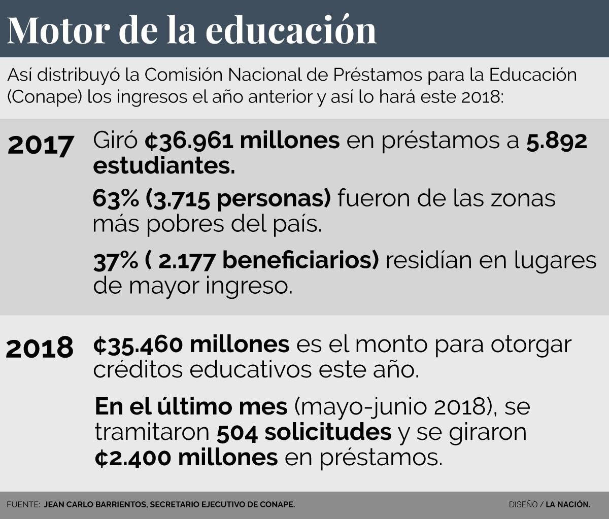 En el 2017, la entidad giró ¢36.961 millones en préstamos a 5.892 estudiantes. De ellos, el 63% (3.715 personas) provenía de las zonas más deprimidas del país, mientras que el 37% ( 2.177) era de lugares de mayor ingreso.
