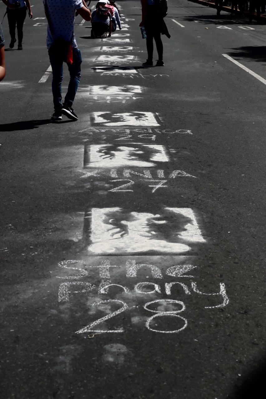 Con el grito de “Vivas las queremos a todas”, los marchistas rindieron homenaje a las mujeres asesinadas, cuyos rostros, nombres edades fueron pintados en la avenida Segunda, lo cual impresionó a los niños, jóvenes y adultos que transitaban por el sitio.
