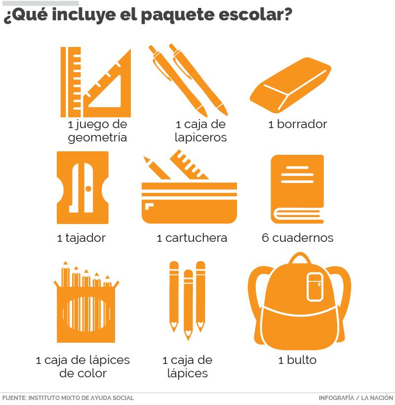 Cada uno de los paquetes escolares, que incluye desde una mochila, hasta lápices de colores, tiene un costo de ¢9.000, para una inversión que supera los ¢1.783 millones.