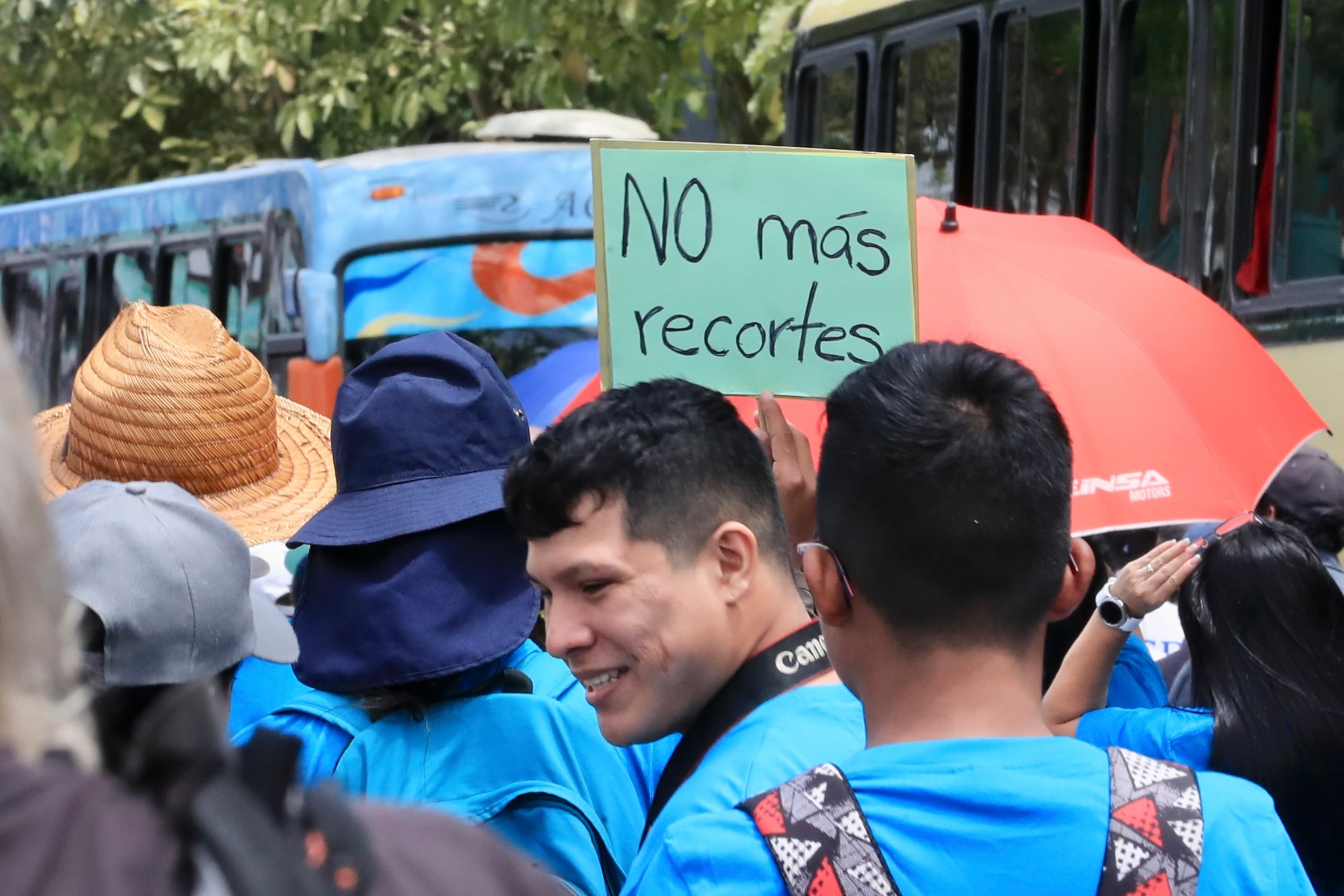 A unos metros de donde Juana Rafaela intenta vender sus productos, en el cajón de un camión con altoparlantes, una voz ordena a los manifestantes para salir hacia la plaza de la Democracia. Son miles. No solo reclaman por el Fondo Especial para la Educación Superior (FEES), protestan por la reducción de recursos para primaria y secundaria, por mejor infraestructura en escuelas y colegios, por mejoras en las evaluaciones y contra la improvisación en la Ruta de la Educación.