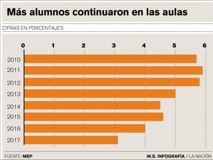 A nivel nacional, la salida de los estudiantes de las aulas bajó 0,9 puntos porcentuales al al pasar de 4%, en 2016, a 3,1% en 2017. En número de alumnos significa 8.157 estudiantes más que se quedaron en el sistema educativo con respecto al año pasado