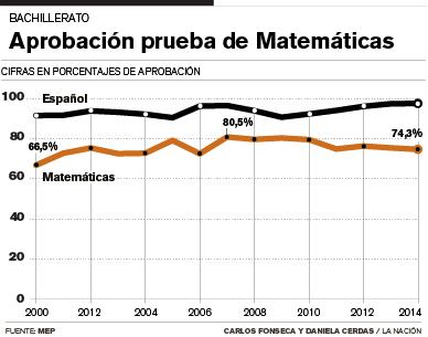 Del año 2000 a la fecha, los porcentajes de aprobación se han mantenido entre el 60% y 80%. El MEP tomó medidas este año para mejorar el promedio del 2014, que fue de 74,39%.