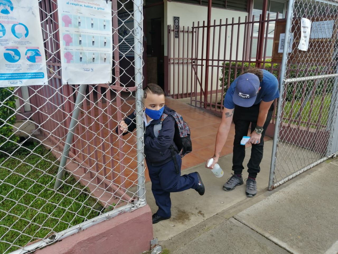 “Ellos solo vienen un día a la semana, el resto es virtual, no es la mejor forma, pero es lo que hay ahorita. Las clases virtuales no son lo mismo, no aprenden igual, pero nos conformamos con esto, es lo que hay”, manifestó Christian González, vecino de Santo Domingo de Heredia, a las 6:40 a. m. de este lunes cuando llegó a dejar a su hijo Jeremy González, de cuarto grado, a la escuela Félix Arcadio Montero, en Santo Domingo de Heredia.