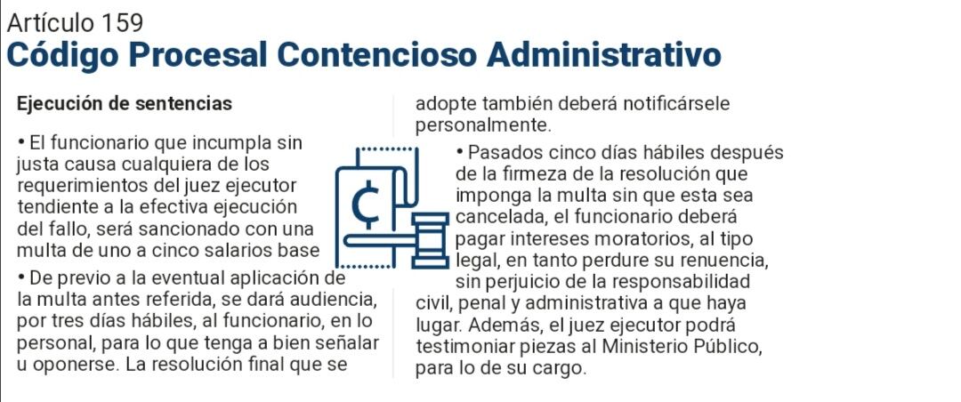 El cobro a Cruz se da porque así lo establece el artículo 159 del Código Procesal Contencioso Administrativo en el apartado de ejecución de sentencia.
