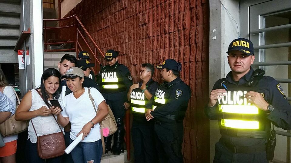 Los ánimos se caldearon más con la llegada de miembros de la Fuerza Pública, que intentaban dar protección a los funcionarios del MEP, pero también para mantener el orden.