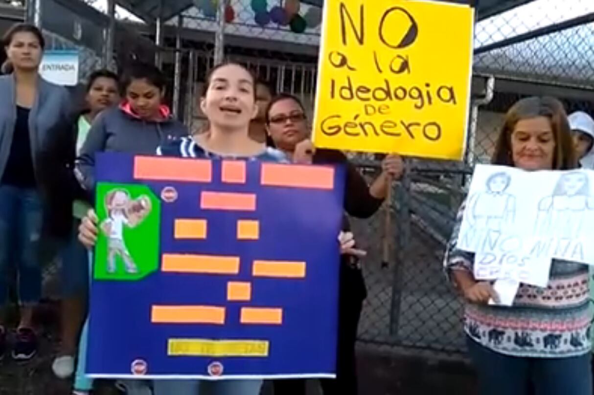 "Desde que inició el mundo fue con hombre y mujer. El Arca de Noé echó parejitas no dos parejas de hombres y (de) mujeres, echó parejas de animal y aves igual", manifestó otra de las madres en la protesta en ese centro educativo que fue captada por el canal de televisión local Aguas Zarcas TV.