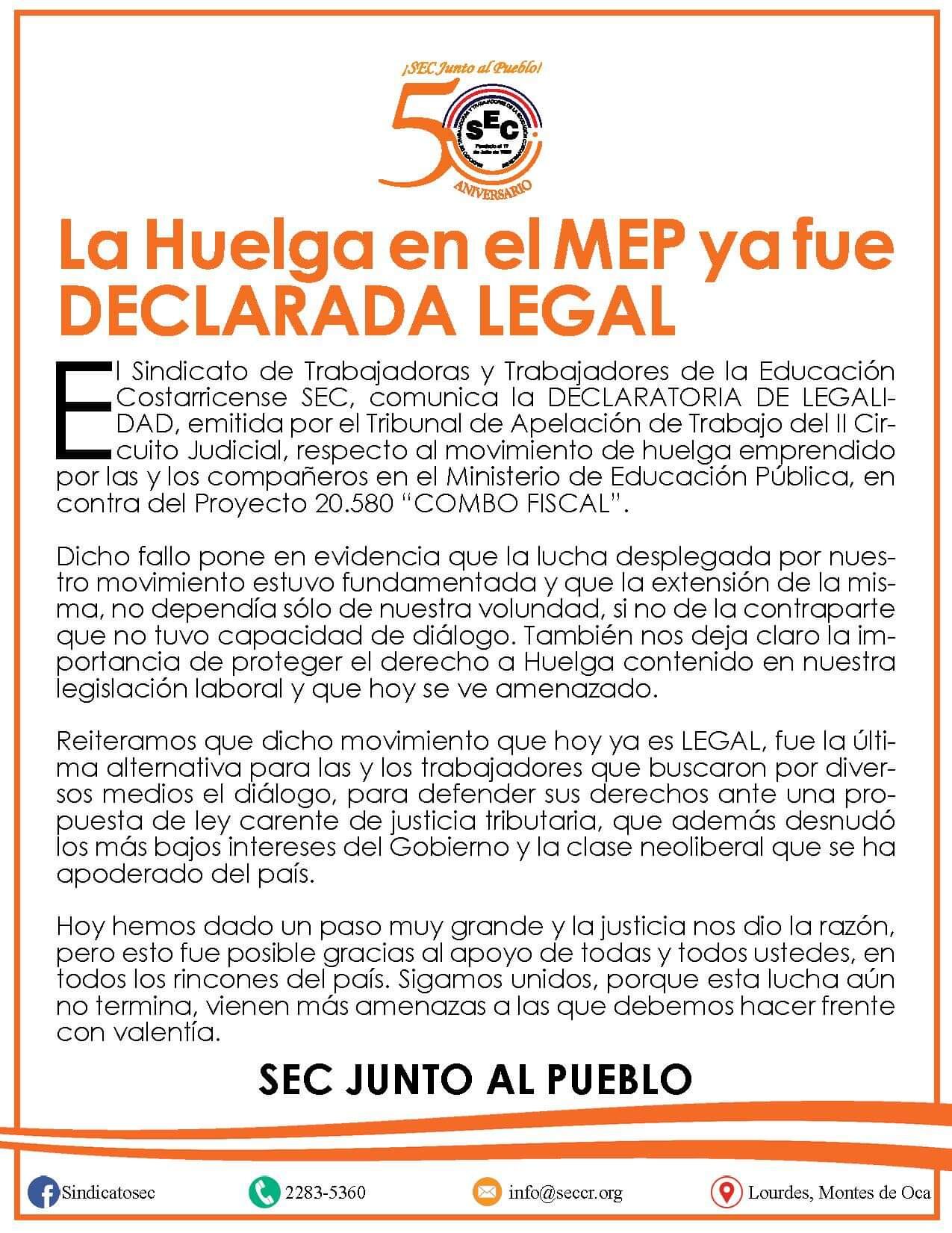 El Tribunal de Apelación de Trabajo del Segundo Circuito Judicial de San José declaró legal la huelga de 89 días que realizaron los educadores el año pasado.