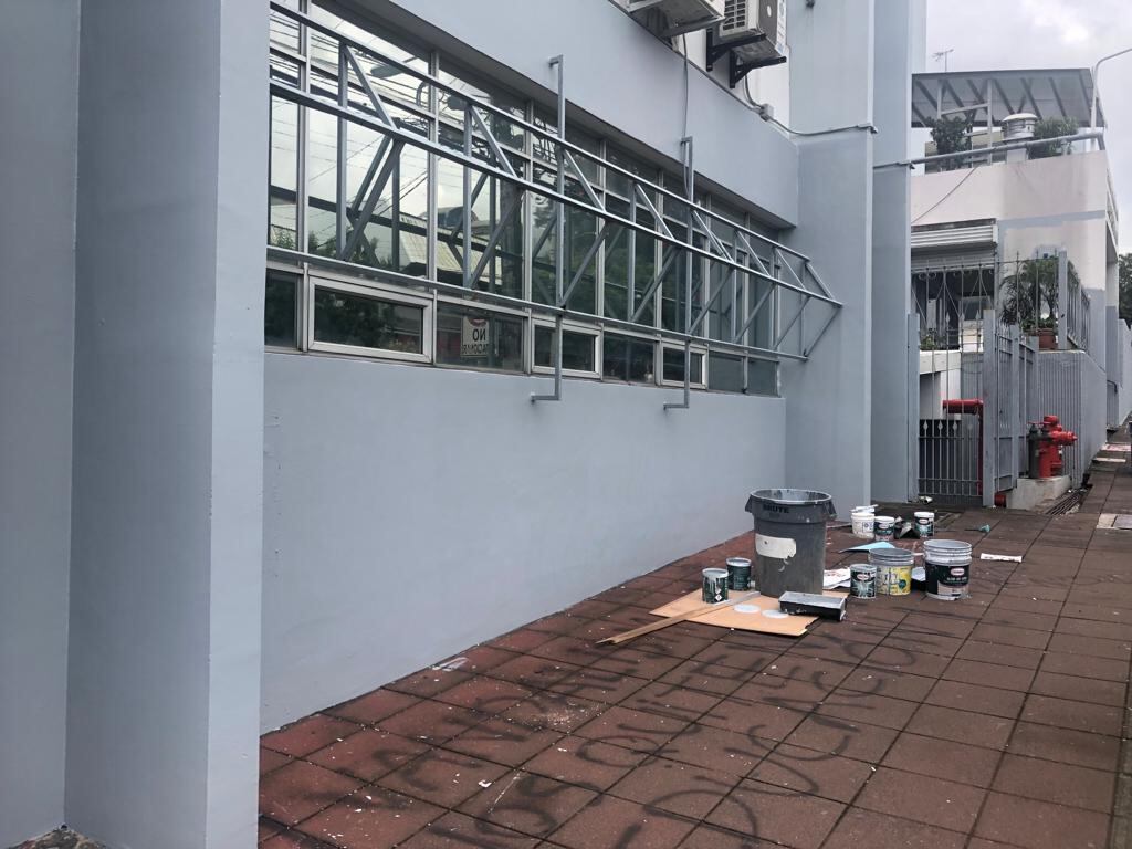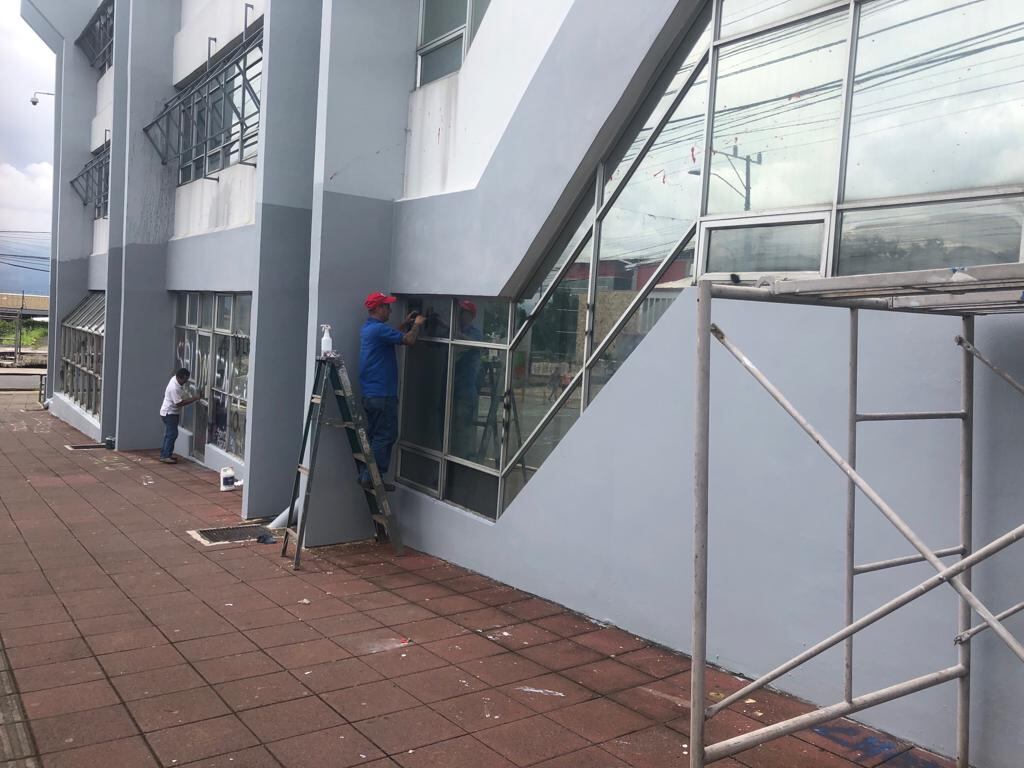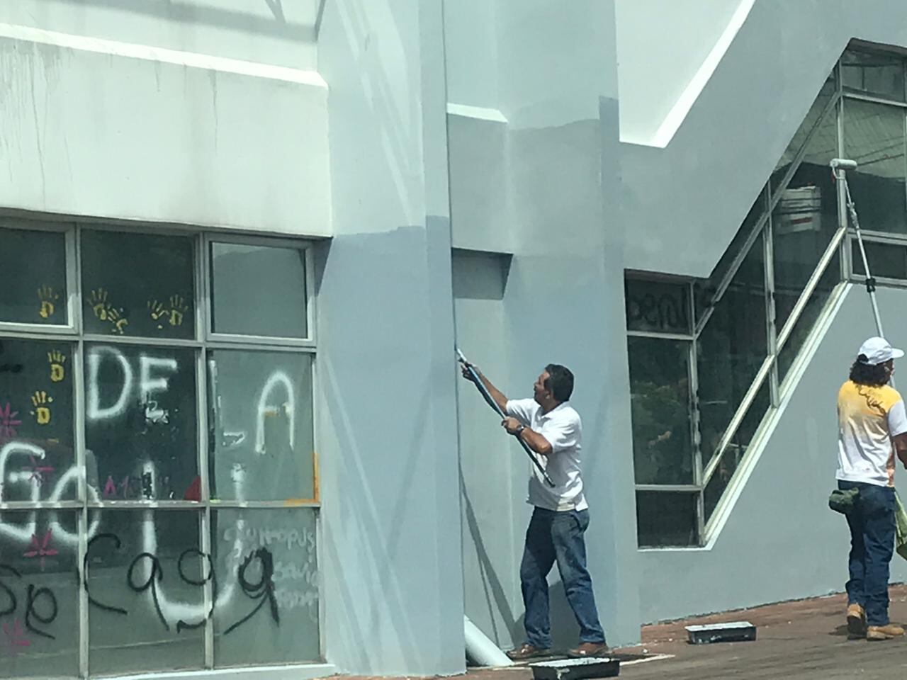 Un grupo de trabajadores comenzó a pintar, la mañana de este sábado, el edificio de la Rectoría de la Universidad Nacional (UNA), el cual permaneció tomado por unos 60 estudiantes encapuchados durante una semana.