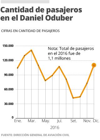 En 2016, el Daniel Oduber Quirós recibió 1,1 millones de pasajeros, la proyección para este año es de 1,4 millones.