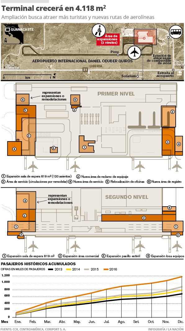 En abril, Coriport anunció mejoras en el aeropuerto de Liberia por $10,3 millones con el objetivo de poder atender la demanda de pasajeros proyectada para finales del 2017.