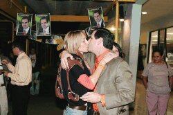 Entre abrazos y algunas lágrimas, Trejos celebró anoche el resultado de la elección en que enfrentó a Carlos González, a quien precisamente también derrotó en la votación hace cuatro años.