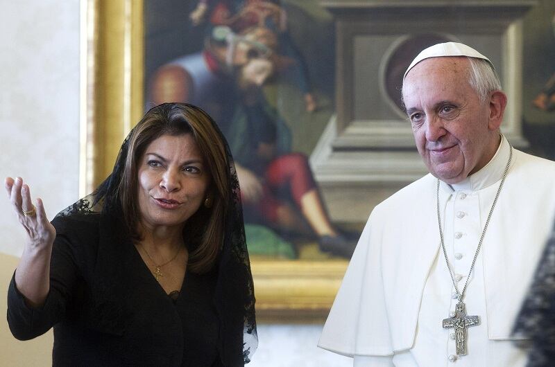La presidenta de Costa Rica llegó al Vaticano sin su esposo y acompañada por una delegación de 12 personas.