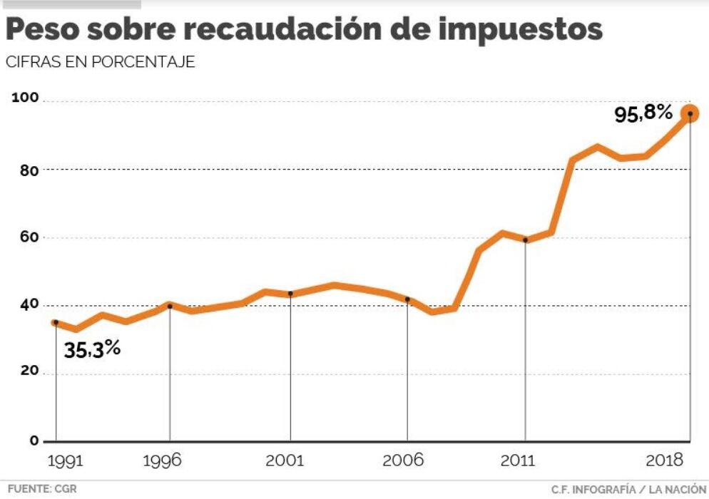 El peso de tales obligaciones ha ido en crecimiento pues, por ejemplo, para 1991 representaban el 35% de la recaudación.