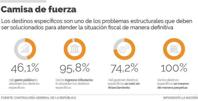“El informe dirigido a la Asamblea Legislativa es el que versa sobre los destinos específicos. Actualmente absorben el 95% de los ingresos tributarios y el 46% del gasto total. Es un tema que el país debe revisar a fondo”, reiteró Acosta.