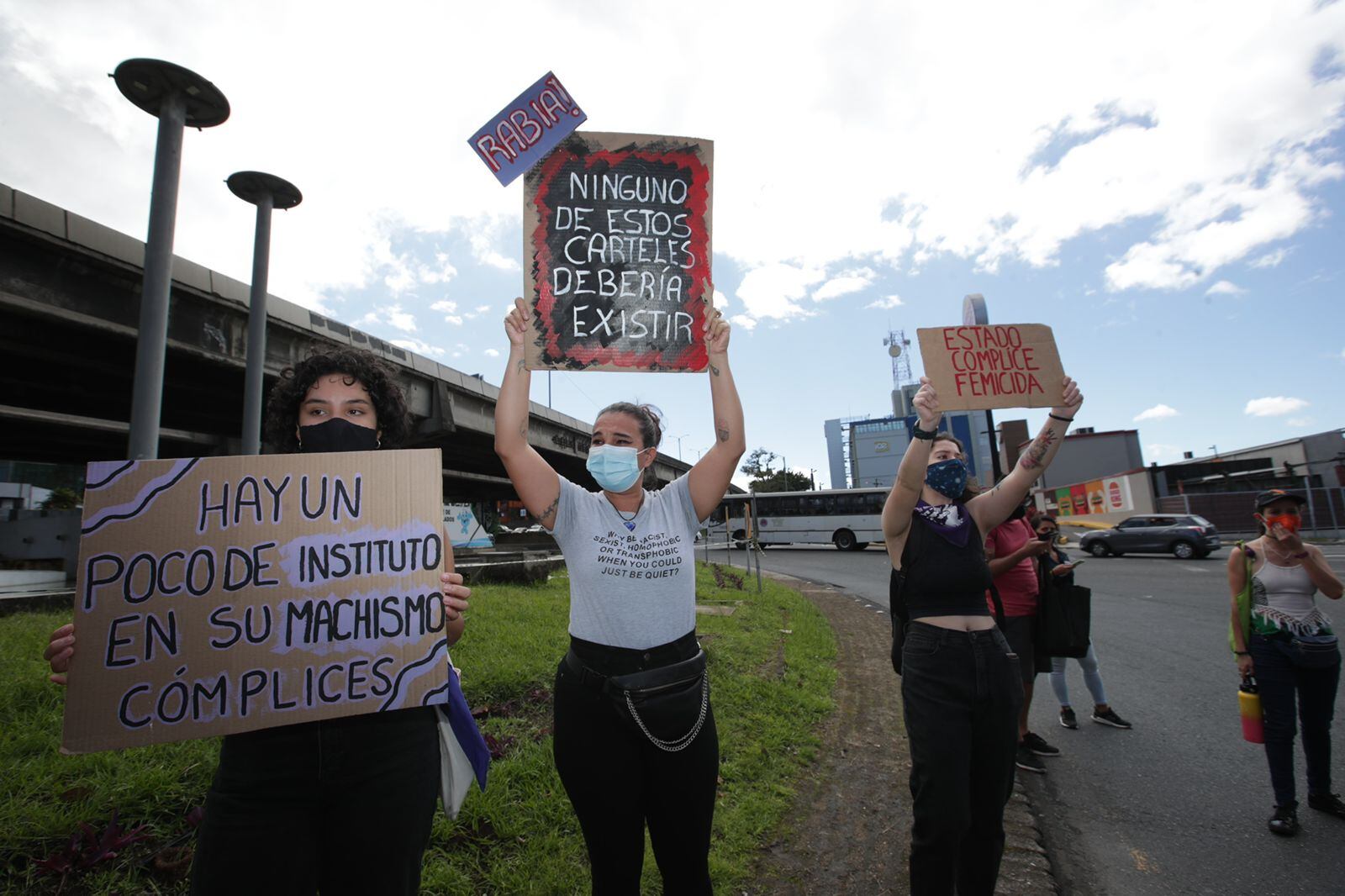 Coreando rimas contra el Gobierno y alzando pedazos de cartón vueltos en pancartas, las manifestantes expresaron su molestia por la actuación de las autoridades, en general, con el tema de la guía y lo que consideran la indefensión de las mujeres en Costa Rica contra actos de agresión.
