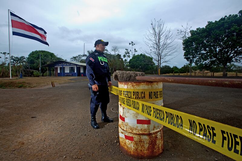 Del lado tico, los dos policías han acabado de almorzar en la delegación y continúan pasivos, cumpliendo su turno. Frente a ellos una bandera enorme de Costa Rica ondea los colores azul, blanco y rojo desteñido, casi rosado.