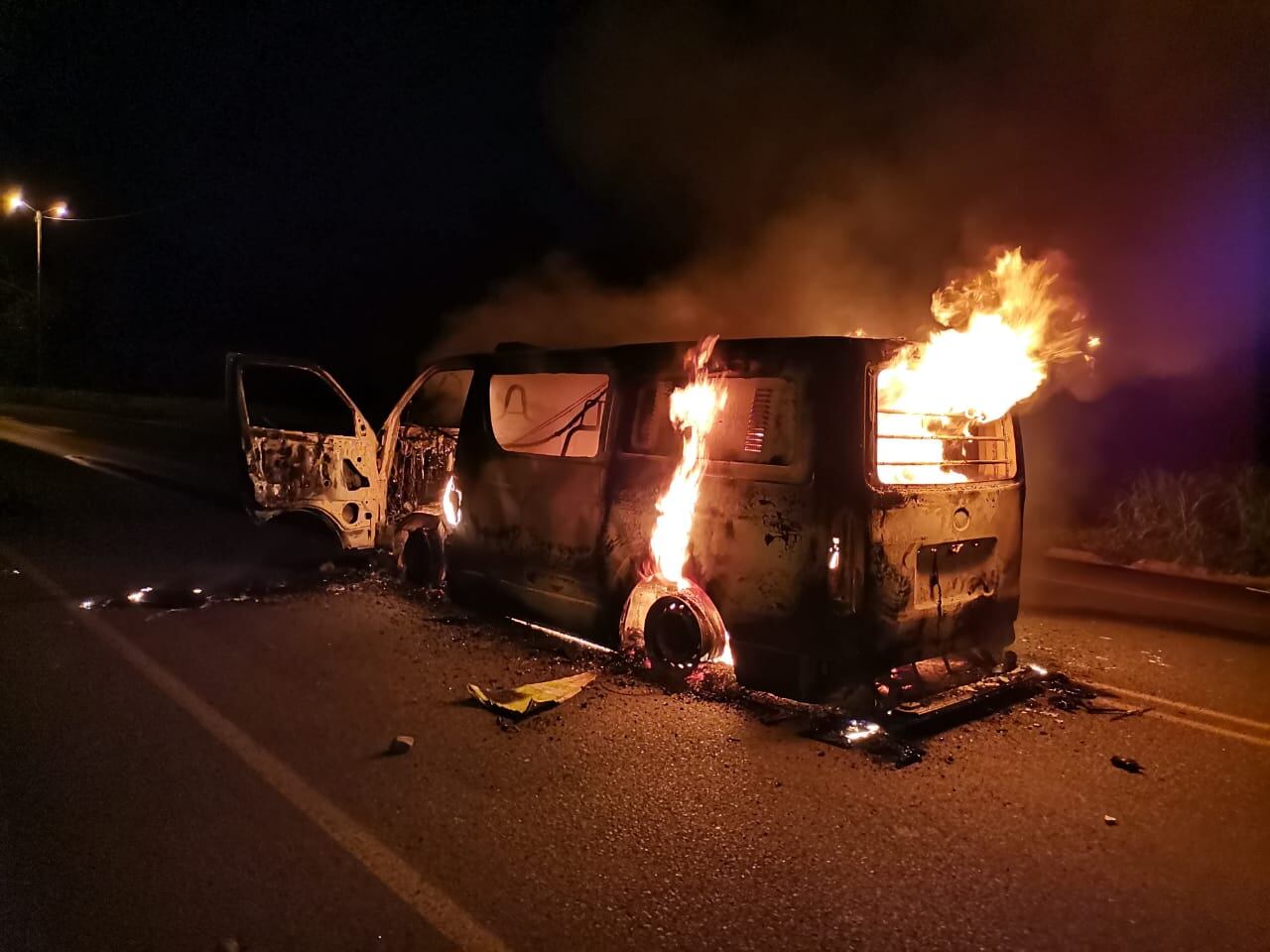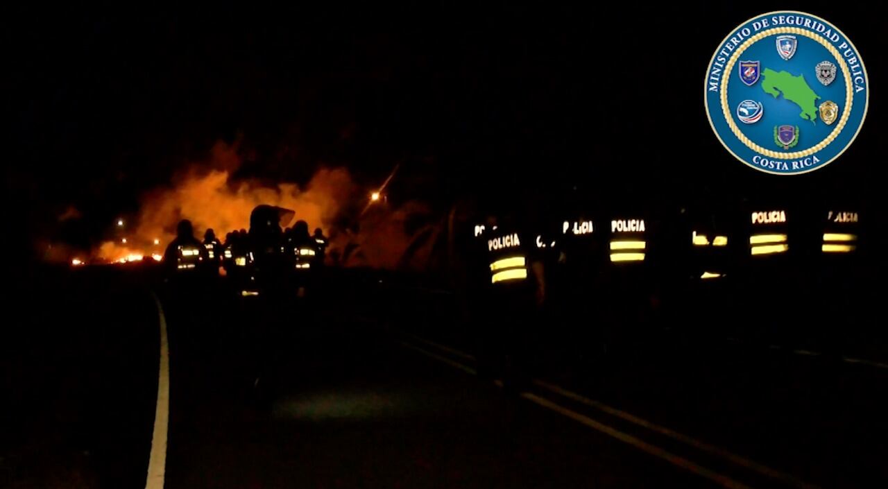 Un vehículo policial fue dañado en San Ramón de Alajuela. En el sector de Caldera, una unidad de la Policía de Tránsito fue incendiada.