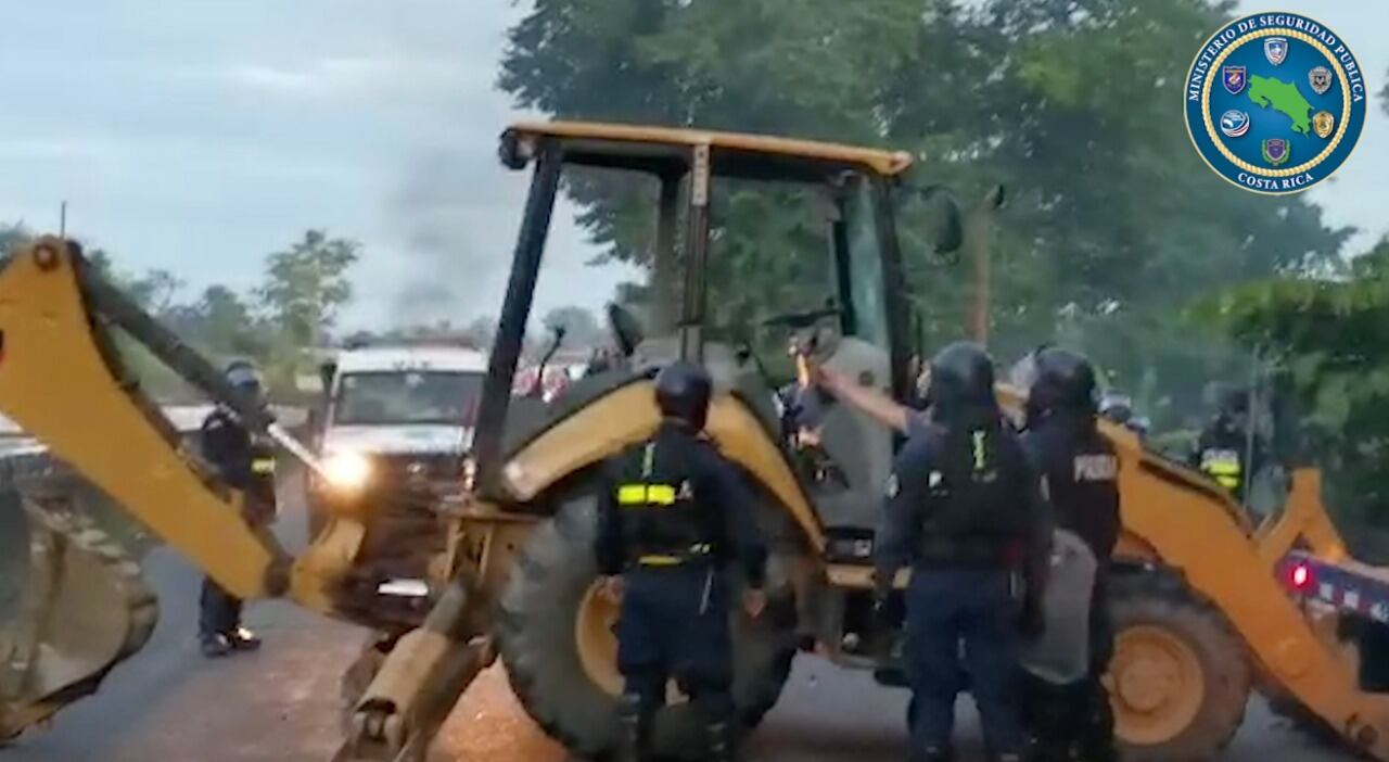 Conduciendo un backhoe, un manifestante que participaba en un bloqueo vial en Guácimo, Limón, intentó arrollar a un grupo de policías la noche de este sábado.