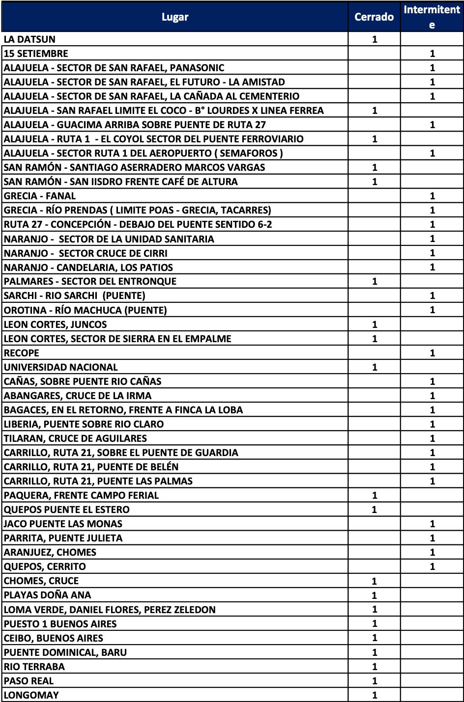 A las 3 p. m. de este lunes, se mantenían bloqueos totales en 57 puntos de las carreteras costarricenses y cierres intermitentes en otros 38 sitios.
