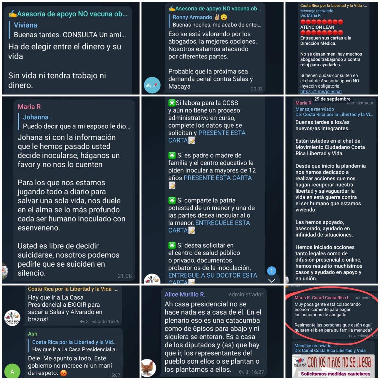 La Nación determinó que en el país funcionan dos colectivos que, aunque tienen una diferencia entre sus nombres, comparten integrantes. Se trata de “Costa Rica Libertad y Vida”, que tiene antecedentes por desinformar en redes sociales, y el “Movimiento por la Salud y la Libertad”, que invadió el Ministerio de Salud el viernes 15 de octubre, luego de ser recibido por la defensora de los Habitantes, Catalina Crespo.