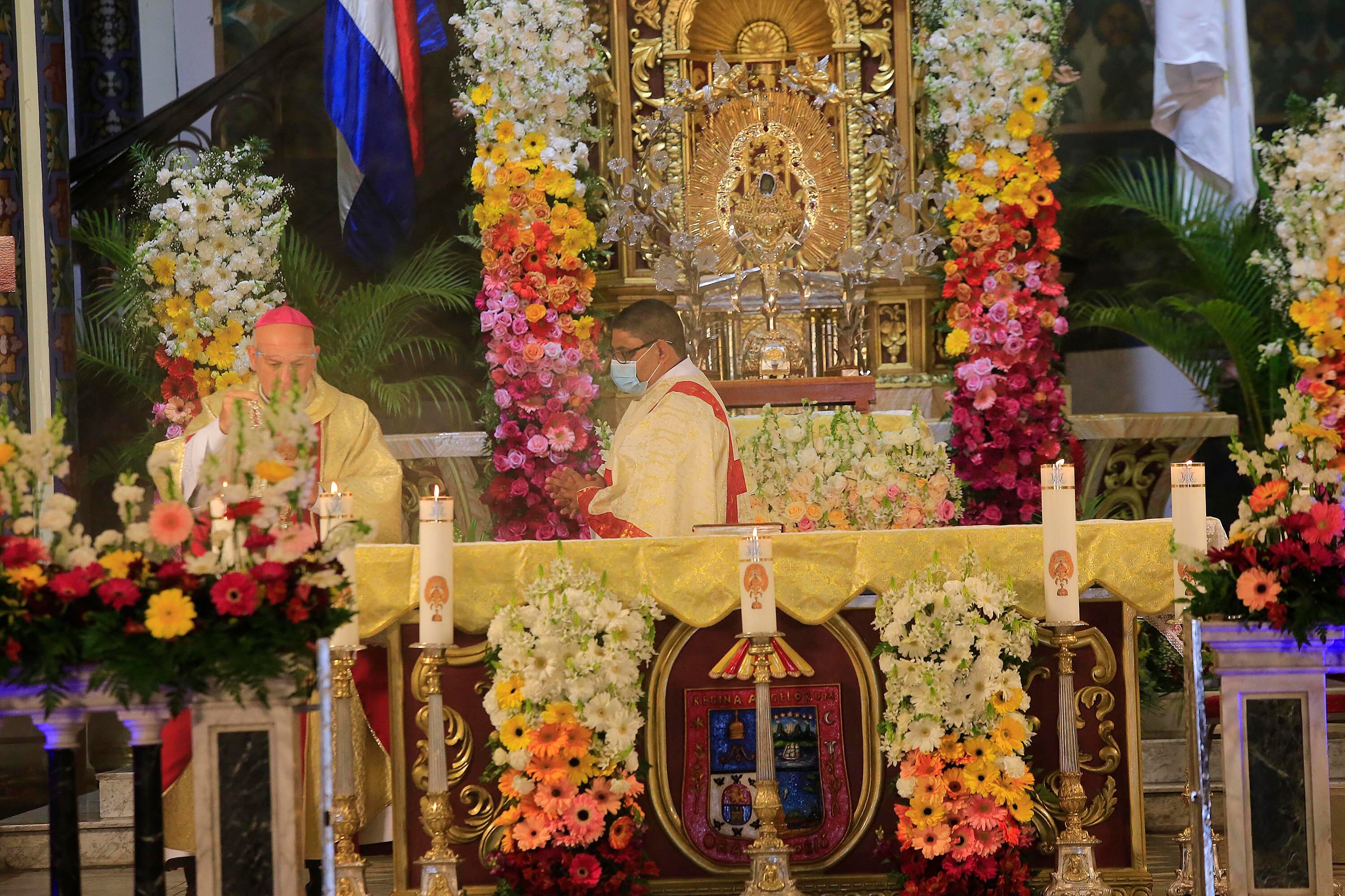 La misa se realizó frente a una audiencia de 15 personas, entre religiosas y feligreses, en el marco de una celebración eucarística que este año, por las medidas sanitarias, no incluyó la procesión con la imagen de la Virgen.