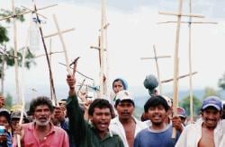 Estas personas habían permanecido allí en protesta contra el gobierno del presidente Somoza y pedían que se pusiera en libertad a presos políticos que según dicen ellos ya cumplieron la pena y se les ha dejado en la cárcel.