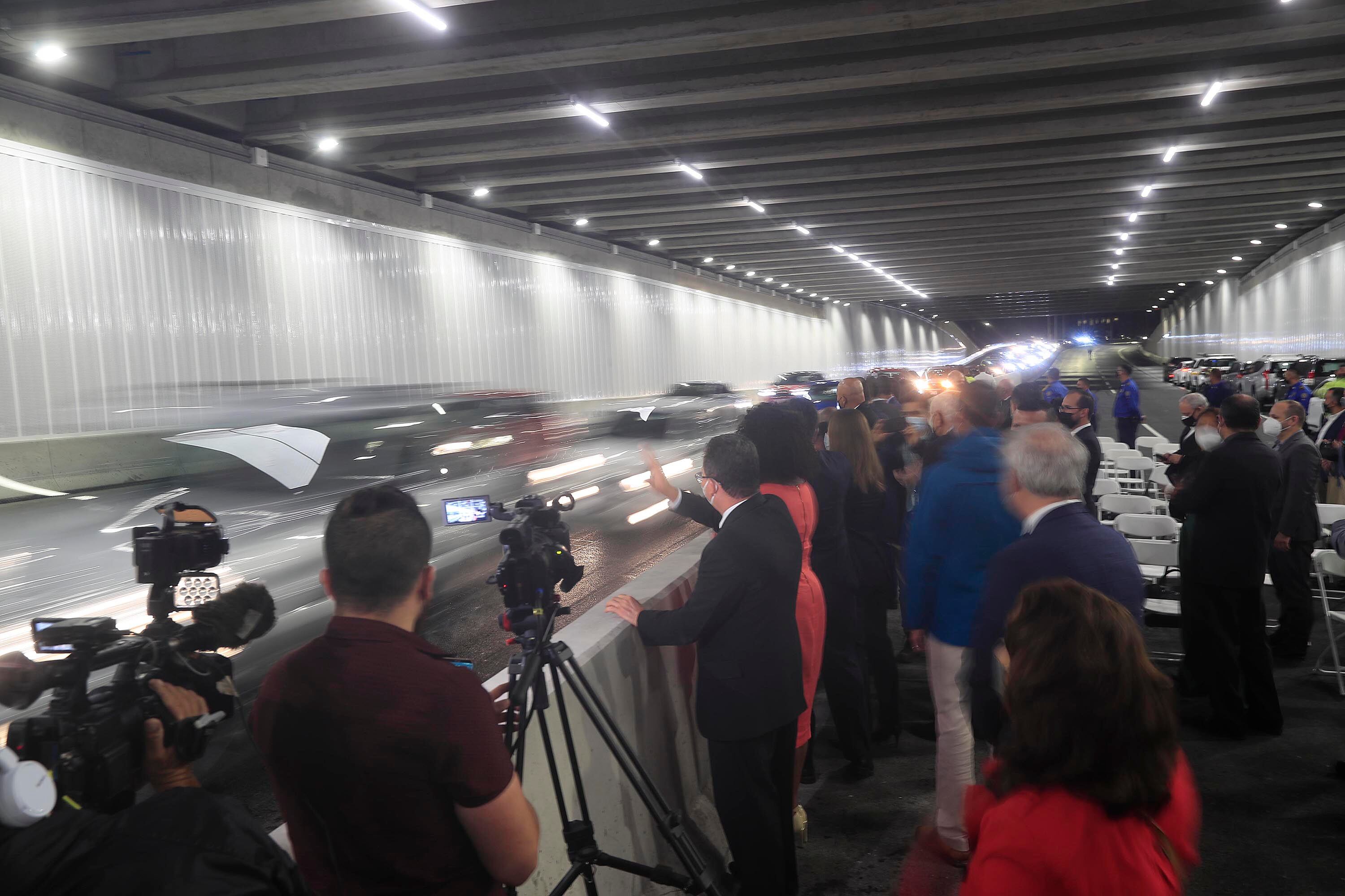 Inmediatamente, las sirenas de los motorizados de la Policía de Tránsito y el cuerpo de Bomberos retumbaron a lo largo del túnel de 500 metros, para atravesar así por primera vez los dos carriles del sentido San Pedro-Guadalupe, mientras que en el sentido contrario, trabajadores, funcionarios y ministros se ubicaban junto a las barreras new jersey para saludar, hacer videos y ver pasar los primeros vehículos.