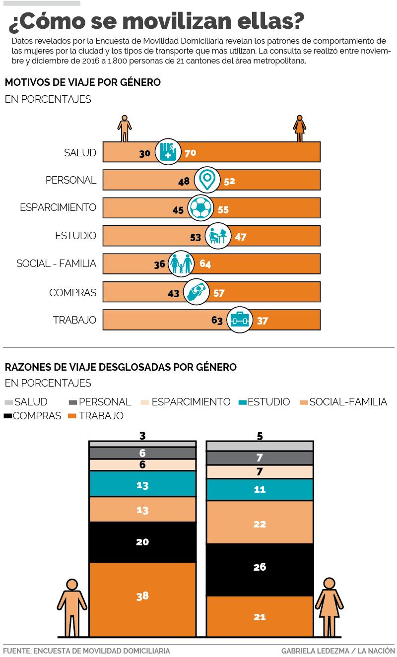 Su realidad es muy parecida a la de miles de mujeres en el área metropolitana, según la Encuesta de Movilidad Domiciliaria, elaborada en el último trimestre de 2016 por iniciativa de varias instituciones públicas, como parte del Plan Integral de Movilidad Urbana Sostenible (Pimus).