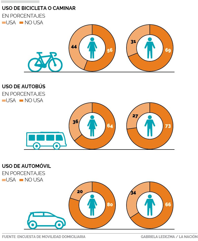 La Encuesta de Movilidad Domiciliaria establece que las mujeres son quienes más utilizan modos activos de transporte, es decir, caminar o andar en bici.
