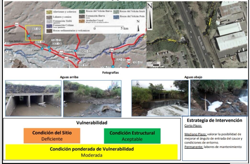 El estudio del Lanamme evaluó 27 pasos de agua en 2013. De ellos, 14 presentaban condiciones de vulnerabilidad alta y otro vulnerabilidad muy alta. Los 12 restantes se ubicaron con riesgo moderado.