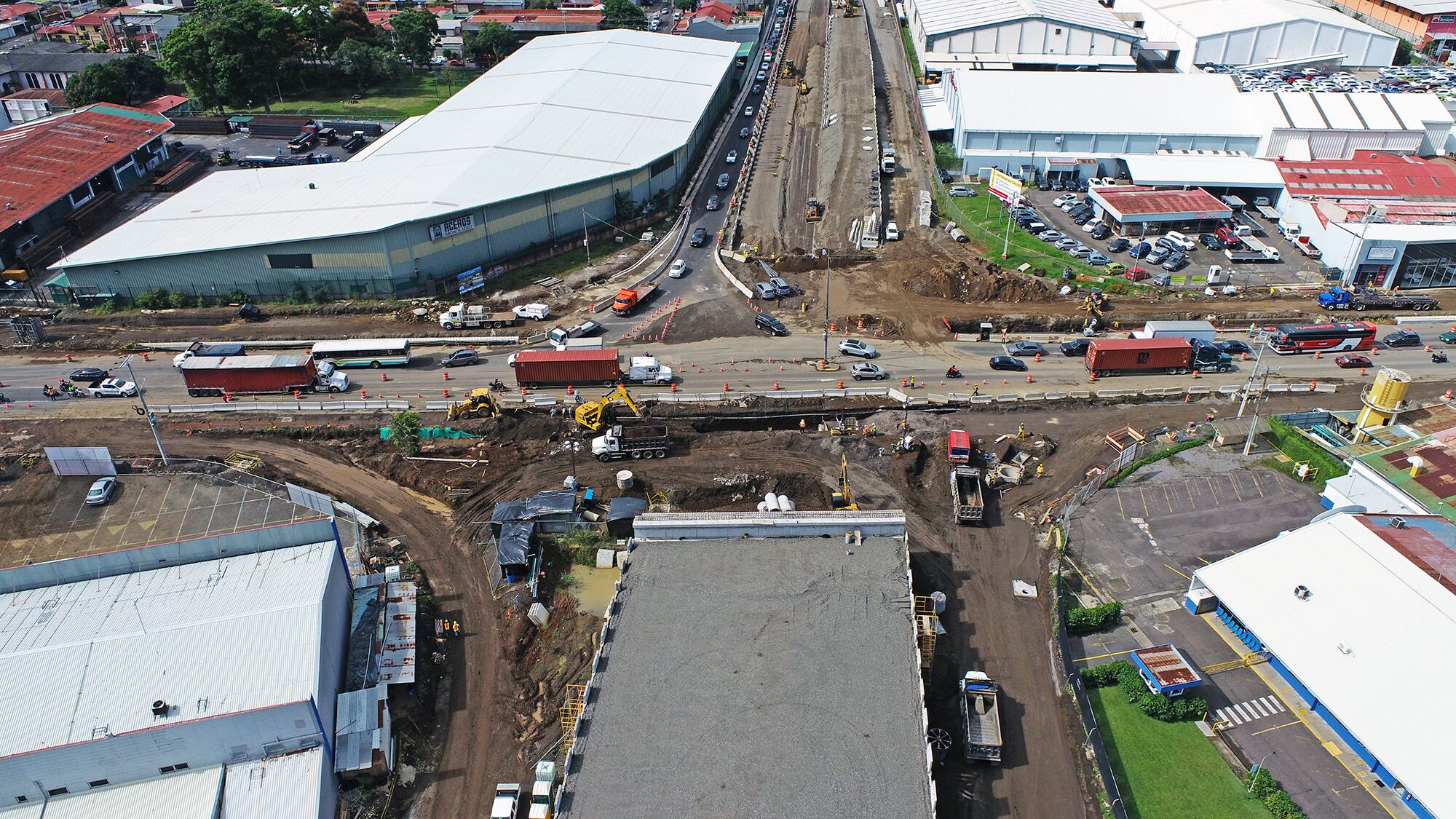 En tanto, en la intersección a tres niveles sobre la ruta 32, se trabaja en el mejoramiento de los cuatro carriles en la vía que va de San José a Limón; en el nivel intermedio se construye una rotonda que conectará las vías marginales del viaducto y que servirá de intercambio entre la 32, la Circunvalación y dichas calles secundarias.