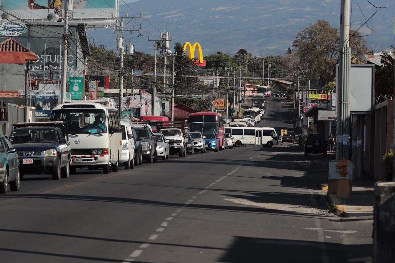 Este miércoles en hora pico, por ejemplo, la presa vehicular se extendió desde el parque de Santo Domingo de Heredia hasta el cementerio de Tibás (unos dos kilómetros y medio).