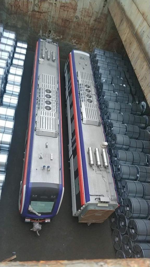“Así se ven en el barco que los trae, los primeros trenes nuevos autopropulsados para pasajeros en la historia del país. Pronto llegarán para mejorar la calidad del transporte público de Costa Rica”, expresó el mandatario.