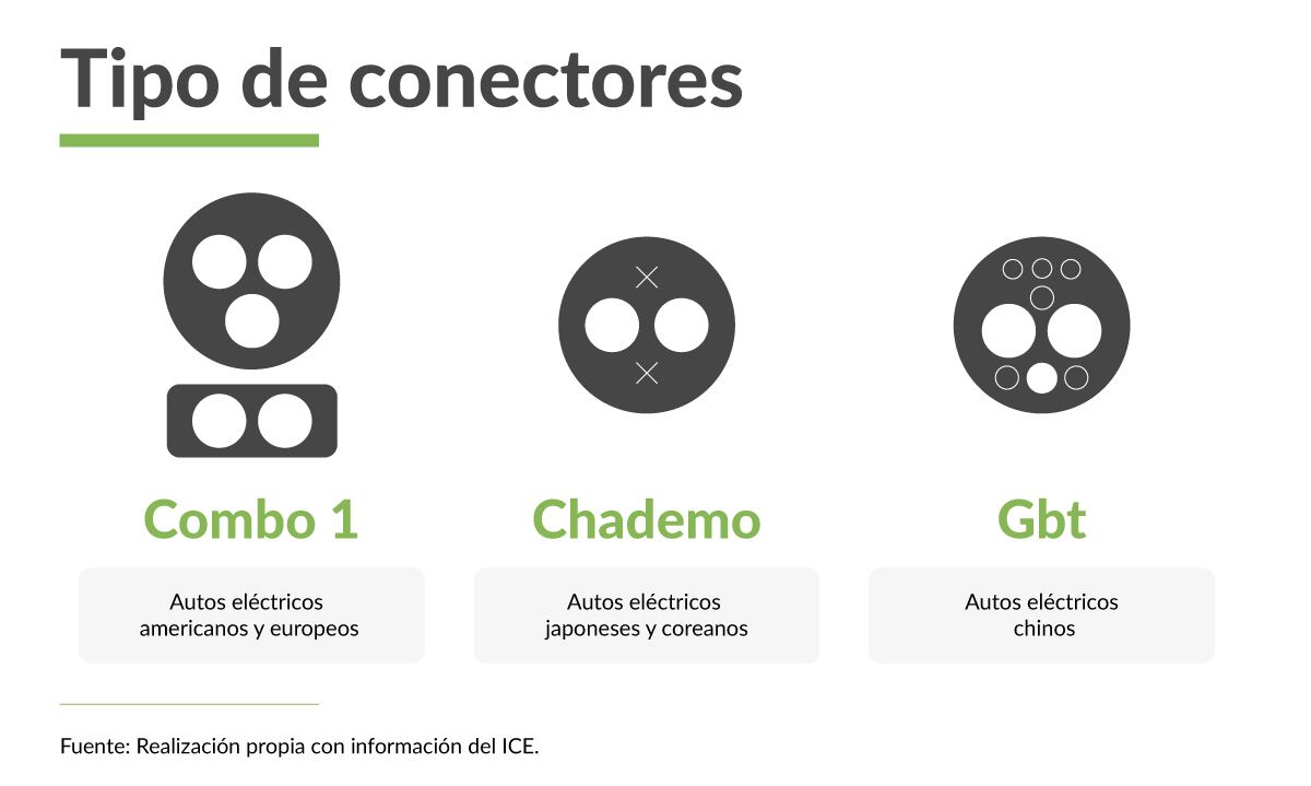 "El inicio de la electromovilidad en Costa Rica se da con vehículos de Estados Unidos, entonces el combo 1 es uno de los modelos más importantes. El chademo es el más popular de todos, porque es el que utiliza, por ejemplo, el Nissan Leaf, que es el auto eléctrico más antiguo y popular. Pero a futuro, el conector gbt de vehículos chinos es el que creemos que va a tener mayor crecimiento en los años que vienen.