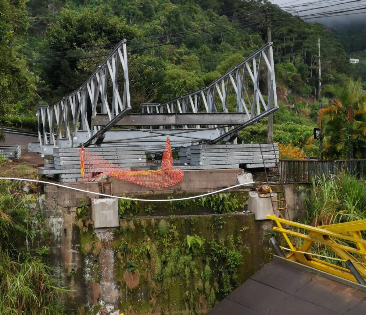 Este lunes, comenzó el armado de la estructura tipo bailey que se colocará para restablecer el paso por ese sector de la ruta entre Orosi y Paraíso de Cartago. La estimación del MOPT es que este puente modular sea puesto en servicio en un plazo de dos semanas.