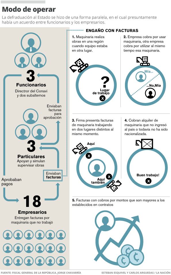 El Ministerio Público estima que el perjuicio en contra del Estado por simulación en la contratación de maquinaria fue de ¢1.234 millones.