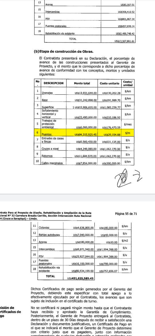 En el tema específico de los puentes, este solo indica en el apartado de la cuantificación de la etapa constructiva que el estimado de las obras relacionadas con puentes sería de $84,3 millones.