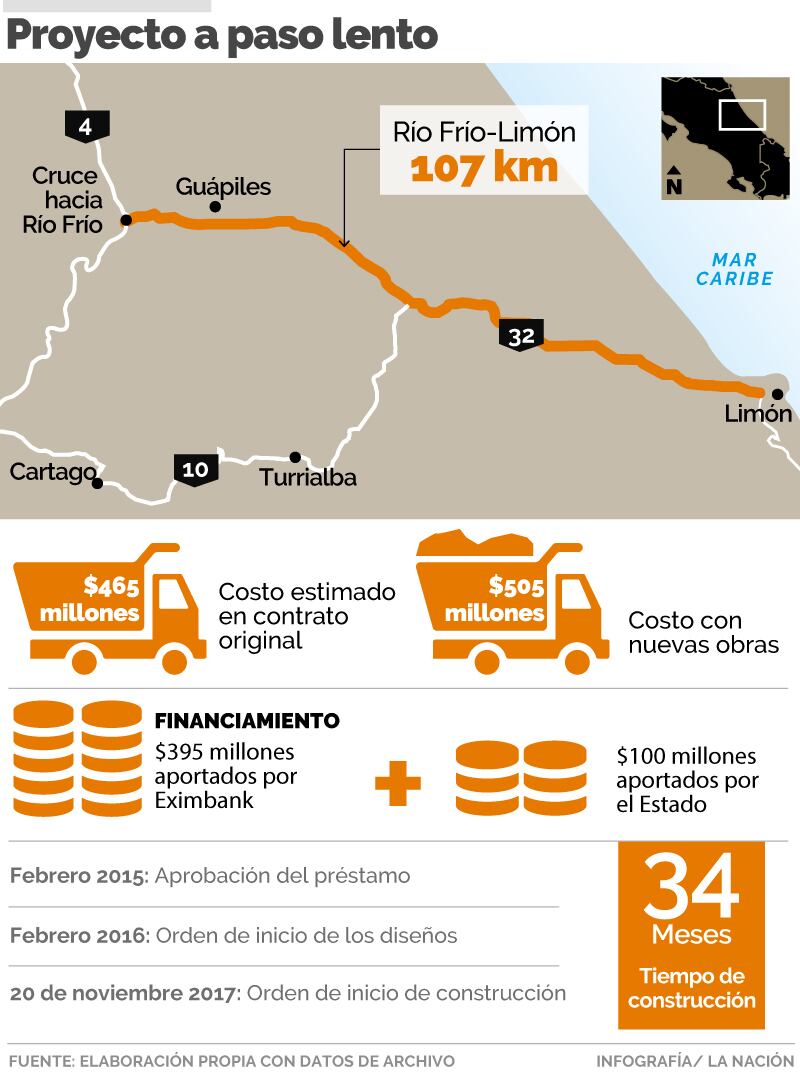 El MOPT exigió a la empresa china CHEC apretar el acelerador en la ampliación de los 107 km entre Río Frío y Limón, pues, a un año y medio de que se dio la orden de inicio de las obras, solo ha avanzado un 10% y la entrega está prevista para octubre del 2020.