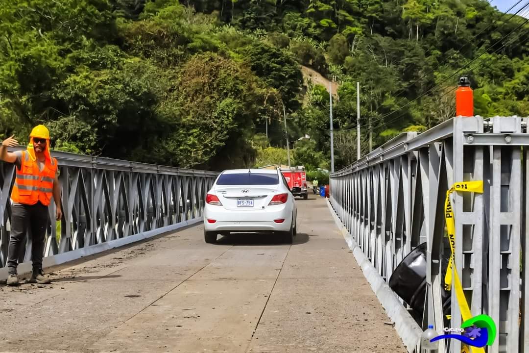 Con la instalación de una estructura tipo Bailey de un solo carril, el Ministerio de Obras Públicas y Transportes (MOPT) rehabilitó el paso de vehículos por el antiguo puente Negro sobre la Ruta Nacional 224, que comunica Paraíso con Orosi, en la provincia de Cartago.