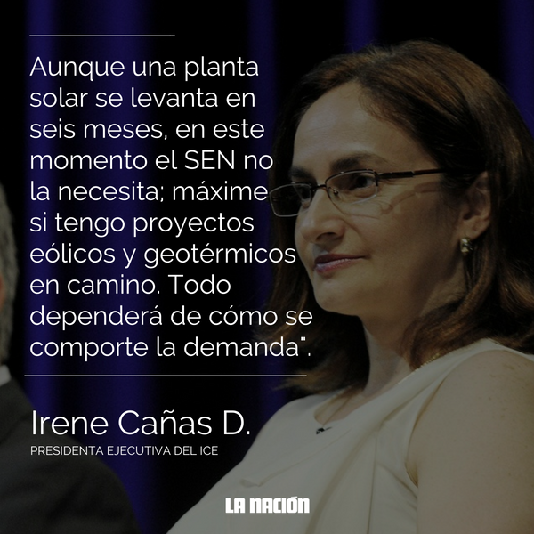 –Pero acaso no es contradictorio descartar así plantas solares pero sí continuar acariciando la posibilidad de hacer una hidroeléctrica de más de $3.700 millones como es Diquís; en esta coyuntura de caída en la demanda de energía solo por la posibilidad de vender en la región hipotéticos servicios de respaldo energético y teniendo problemas de transmisión en Nicaragua, como usted misma reconoce.