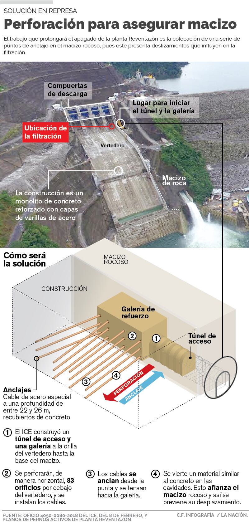 La colocación de una red de puntos de anclaje en el macizo rocoso se hará porque, como admitió el ICE, este presenta deslizamientos que facilitan la filtración.
