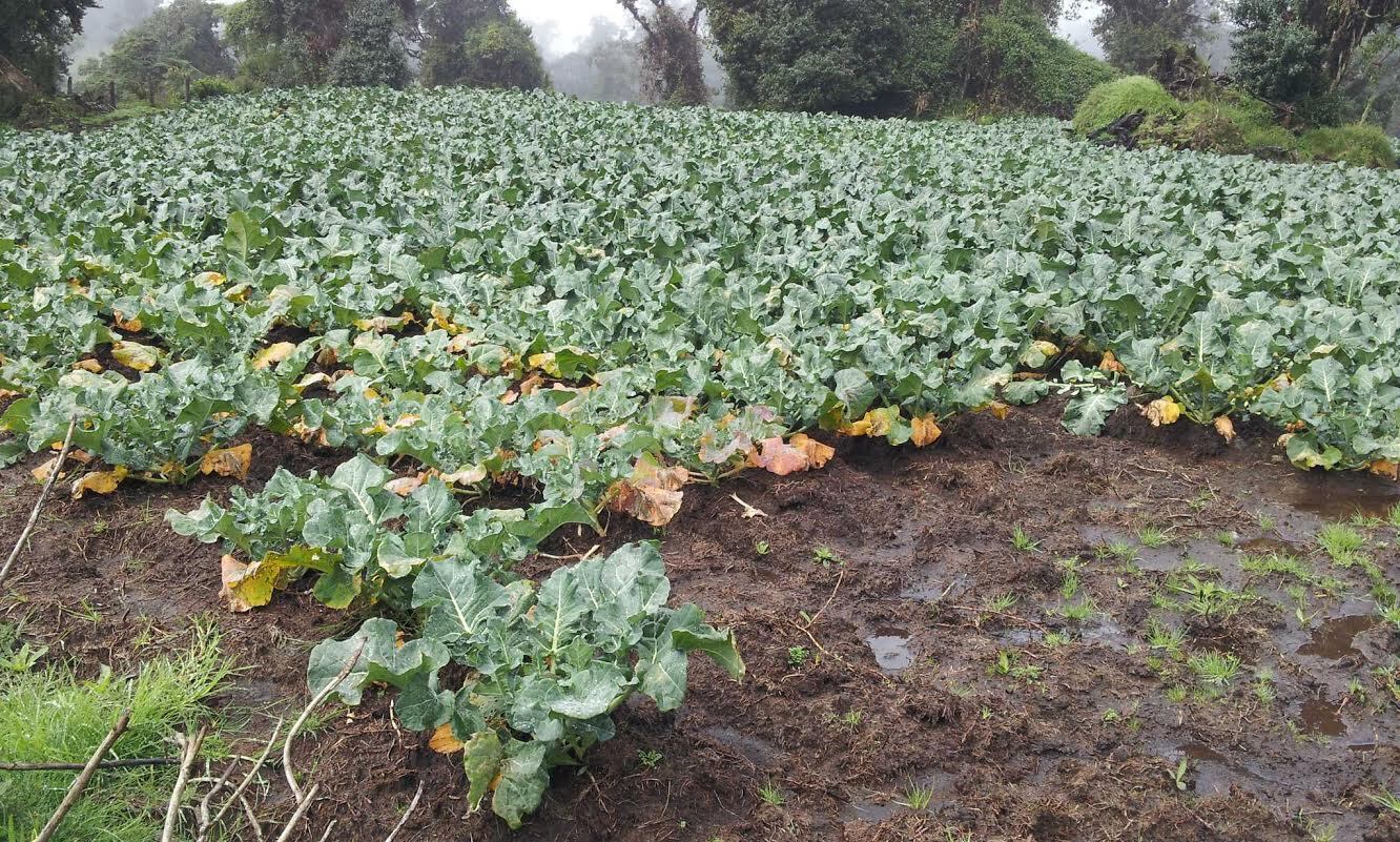 Hay 19 hectáreas de repollales, de los cuales la cosecha está muy avanzada; el brócoli está sembrado en 4.5 hectáreas y también se encuentra muy avanzado.
