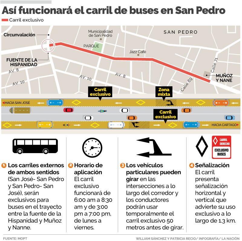 A partir de este lunes los buses tendrán carriles exclusivos en San Pedro de Montes de Oca.