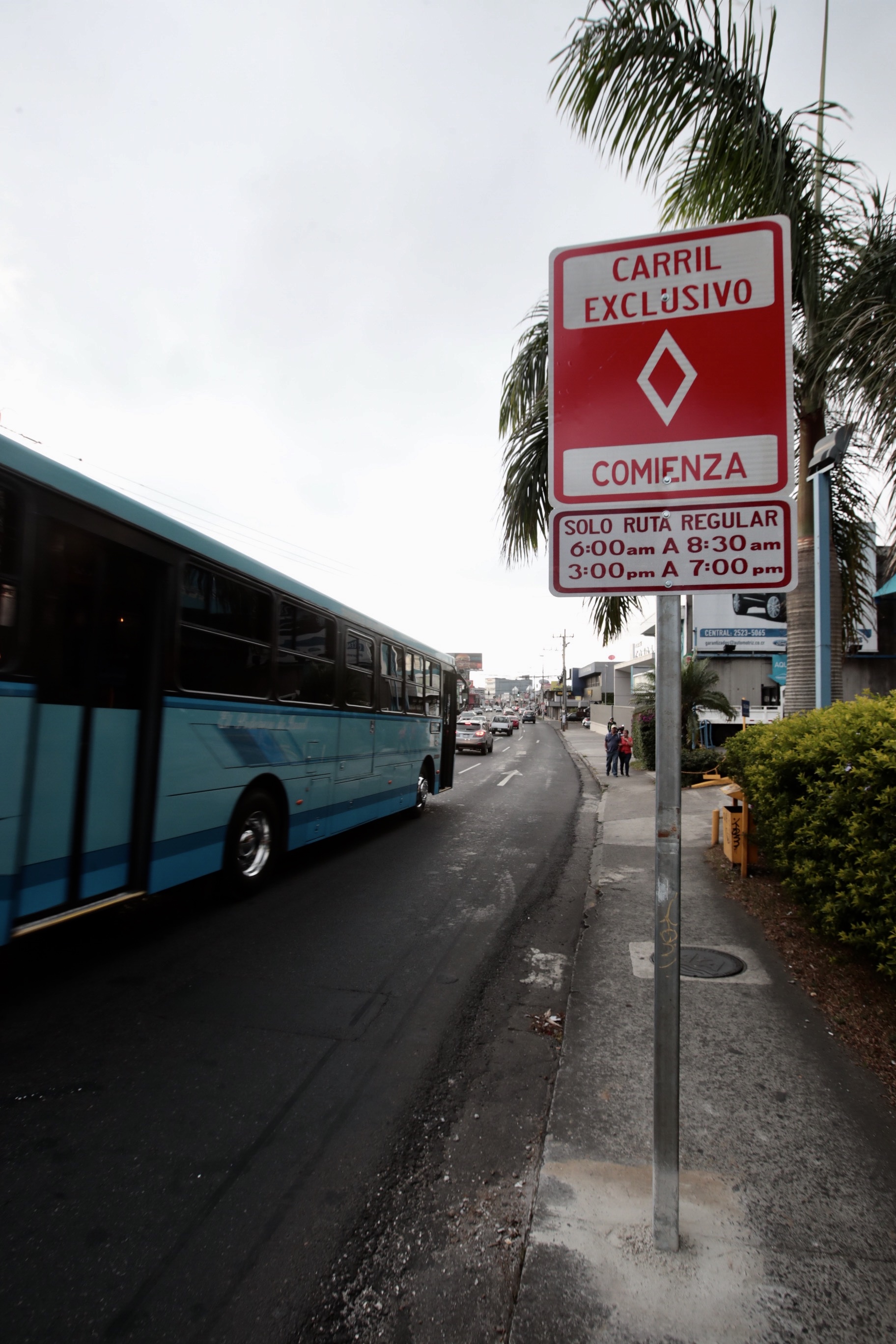 Los carriles exclusivos se empezaron a aplicar hace casi año y medio en Tibás, desde la empresa Neón Nieto hasta el restaurante Pizza Hut.