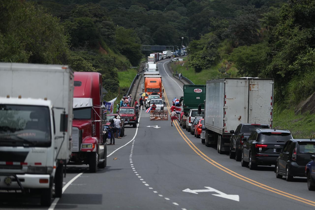 La otra vía clave es la que va hacia Caldera, en Puntarenas. No se registraban bloqueos en los alrededores de la terminal, aunque sí en la carretera desde San José (ruta 27).